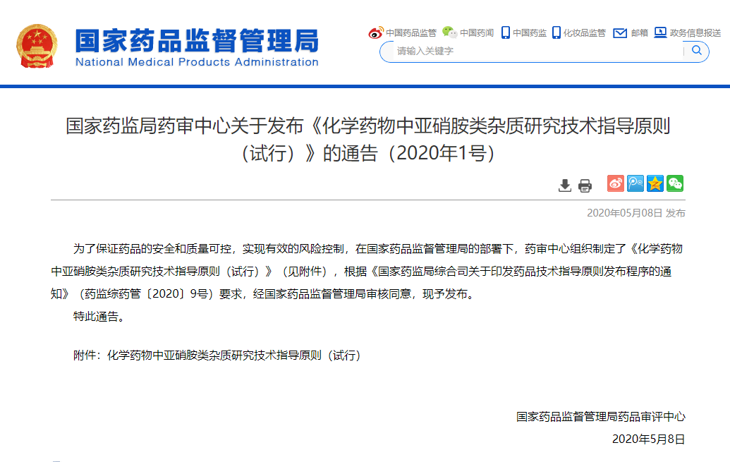 為了保證藥品的安全和質(zhì)量可控,實(shí)現(xiàn)有效的風(fēng)險(xiǎn)控制,在國(guó)家藥品監(jiān)督管理局的部署下,藥審中心組織制定了《化學(xué)藥物中亞硝胺類雜質(zhì)研究技術(shù)指導(dǎo)原則(試行)》(見(jiàn)附件),根據(jù)《國(guó)家藥監(jiān)局綜合司關(guān)于印發(fā)藥品技術(shù)...