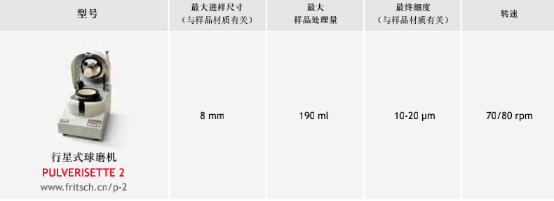 品牌 | 飛馳FRITSCH | 庫存 | 需咨詢 |