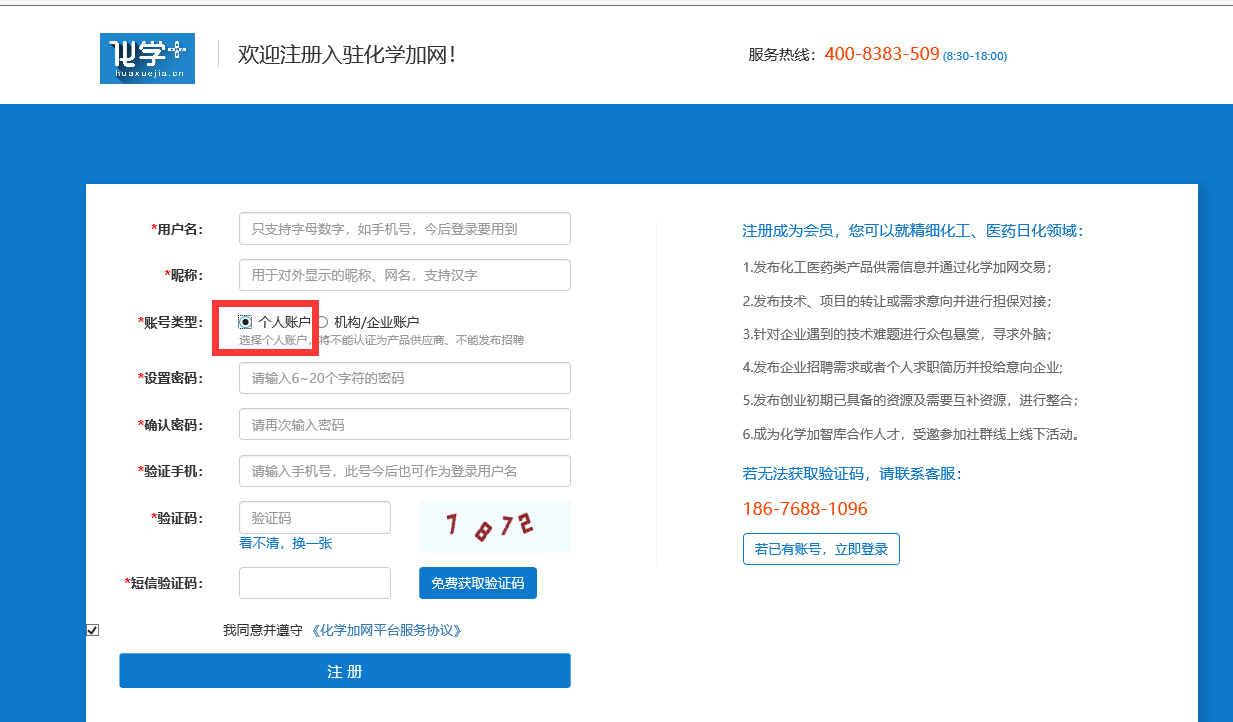 步驟一:求職者訪問化學(xué)加網(wǎng)注冊(cè)個(gè)人賬戶。注冊(cè)網(wǎng)址:http://www.m.yqxsz.com/register.html,如下圖所示