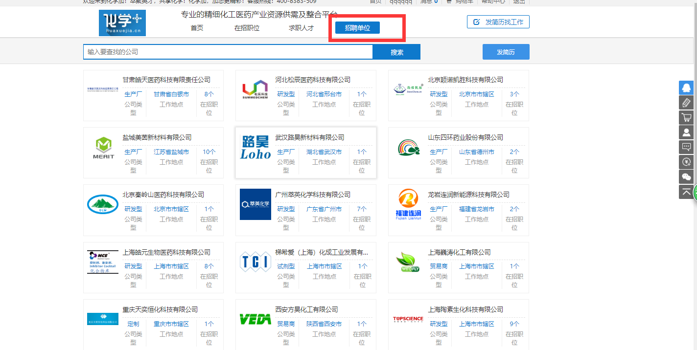 步驟五:創(chuàng)建好自己的簡歷,接下回到化學(xué)加首頁,進(jìn)入“找英才”。