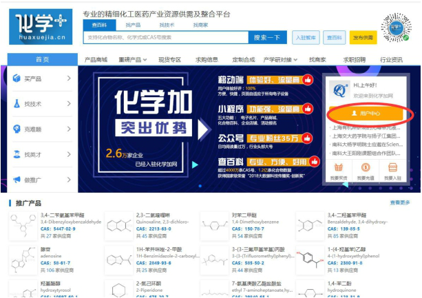 步驟二:注冊后在首頁點擊“用戶中心”。