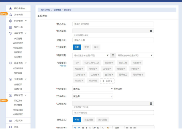 步驟四:填寫招聘職位相關信息后,發(fā)布招聘信息。