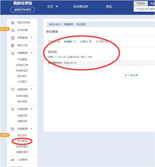 步驟六:審核通過后,職位進入化學加網(wǎng)招聘欄目-在招職位列表,對外展示。列表頁地址:http://www.m.yqxsz.com/getJobList.html