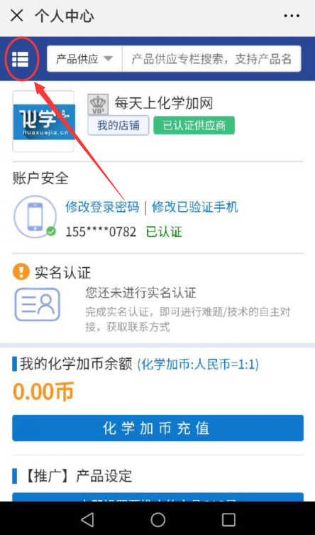 1.用戶登錄之后,會直接跳轉(zhuǎn)到移動端首頁,在中間菜單區(qū),原先的注冊和登錄按鈕會變成“我的賬戶”和“供需管理”,點擊“我的賬戶”或者右上角的頭像圖標(biāo),即可進入個人中心。