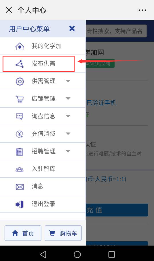 1.企業(yè)認(rèn)證通過審核后,可以發(fā)布供需。在移動端首頁,中間菜單區(qū)有個“發(fā)布供需”的按鈕,點擊即可進入發(fā)布供需的頁面。