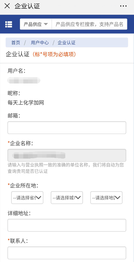 填寫好企業(yè)名稱,會跳轉(zhuǎn)到企業(yè)認(rèn)證的頁面,帶*的為必填項目,盡可能多填全信息,并勾選我已閱讀,提交認(rèn)證。等待審核通過后即可發(fā)布供需。