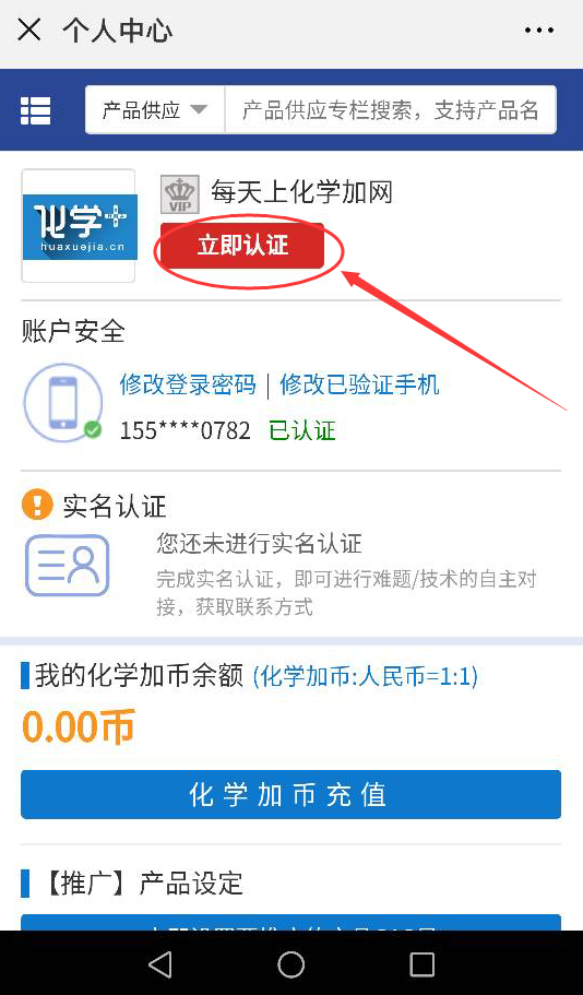2.在個人中心如果有立即認(rèn)證的紅色按鈕,說明還未認(rèn)證,需要點擊立即認(rèn)證,填寫好企業(yè)資料提交審核來開通店鋪。