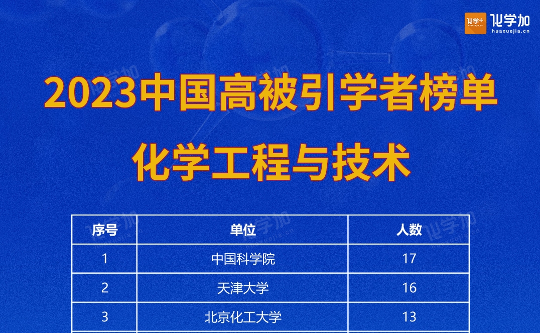 愛思唯爾2023“中國高被引學者”榜單,化學工程與技術學科184人上榜,中國科學院、天津大學、北京化工大學、華東理工大學、清華大學、大連理工大學等機構上榜人數較多。...