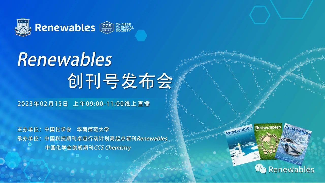 為慶祝Renewables創(chuàng)刊,中國化學(xué)會(huì)和華南師范大學(xué)特于02月15日(星期三)上午在線上舉行隆重的發(fā)布儀式,歡迎大家通過化學(xué)加視頻號觀看!...