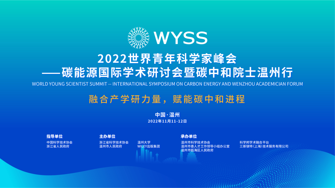 2022世界青年科學(xué)家峰會——碳能源國際學(xué)術(shù)研討會暨碳中和院士溫州行是由浙江省科學(xué)技術(shù)協(xié)會、溫州市人民政府、溫州大學(xué)、WILEY出版集團(tuán)、溫州市委組織部、溫州甌海區(qū)人民政府和科學(xué)邦學(xué)術(shù)融合平臺聯(lián)合發(fā)起...