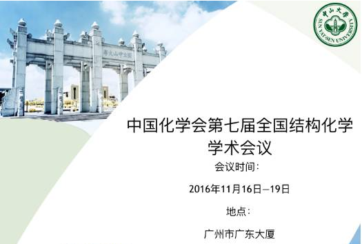 由中國(guó)化學(xué)會(huì)、國(guó)家自然科學(xué)基金委員會(huì)主辦的“中國(guó)化學(xué)會(huì)第七屆全國(guó)結(jié)構(gòu)化學(xué)學(xué)術(shù)會(huì)議”定于2016年11月16日至19日在廣東省廣州市舉行。會(huì)議將通過大會(huì)報(bào)告、主旨報(bào)告、邀請(qǐng)報(bào)告、口頭報(bào)告和墻報(bào)展講等形...