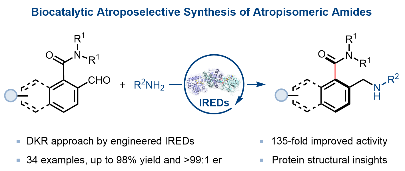 近日,中國醫(yī)學科學院/北京協(xié)和醫(yī)學院醫(yī)藥生物技術研究所付海根課題組與宋丹青課題組合作,利用亞胺還原酶(IREDs)催化的動態(tài)動力學拆分策略,首次實現(xiàn)了軸手性芳基酰胺類分子的酶催化不對稱合成,相關研究成...