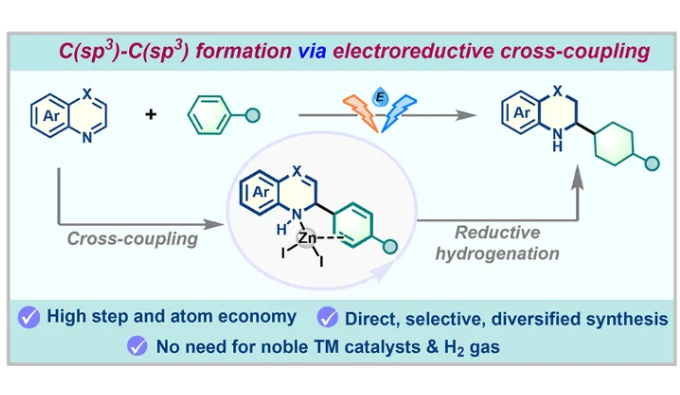 近日,華南理工大學張珉課題組通過開發(fā)無過渡金屬參與的電化學合成策略,在室溫條件下利用無隔膜電解池,以鋅板為陽極、鋁板為陰極,由 N-雜芳烴與芳基羧酸衍生物(酯、腈、酰胺等)經(jīng)電還原交叉偶聯(lián),實現(xiàn)了α-...