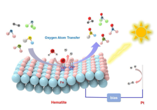 化學(xué)所光化學(xué)重點(diǎn)實(shí)驗(yàn)室趙進(jìn)才、陳春城、章宇超研究組發(fā)現(xiàn)赤鐵礦(α-Fe2O3)納米光電催化材料表面可高效高選擇性活化水分子,通過非自由基途徑將水中的氧原子轉(zhuǎn)移到系列有機(jī)和無機(jī)反應(yīng)物上,實(shí)現(xiàn)了它們的高選...