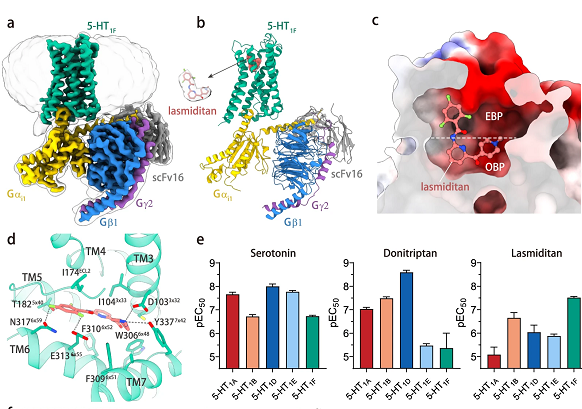 近日,中國(guó)科學(xué)院上海藥物研究所徐華強(qiáng)課題組利用冷凍電鏡技術(shù),首次解析了5-HT1F受體結(jié)合G蛋白以及抗偏頭痛藥物拉米替坦的復(fù)合物結(jié)構(gòu),揭示了拉米替坦選擇性結(jié)合5-HT1F受體的結(jié)構(gòu)基礎(chǔ)。...