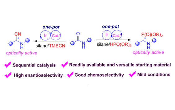 廈門(mén)大學(xué)化學(xué)化工學(xué)院黃培強(qiáng)教授課題組在不對(duì)稱催化的酰胺還原官能化方面取得重要進(jìn)展,相關(guān)成果以“Enantioselective Reductive Cyanation and Phosphonylat...