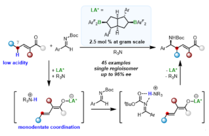 該反應(yīng)不需要借助輔助基團(tuán),是首例以非環(huán)狀α,β-不飽和酮為底物的“直接法”AVMRs。更為重要的是,該工作證明了手性硼催化劑的獨(dú)特優(yōu)勢(shì),其強(qiáng)路易斯酸性可以有效活化單齒、弱配位的酮類底物,其大位阻為遠(yuǎn)程...
