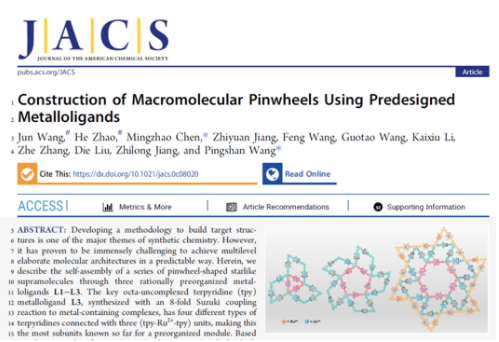 ?近日,國際化學(xué)頂尖期刊J. Am. Chem. Soc.發(fā)表了中南大學(xué)化學(xué)化工學(xué)院王平山教授課題組超大單分子精準(zhǔn)組裝研究成果:“Construction of Macromolecular Pinw...