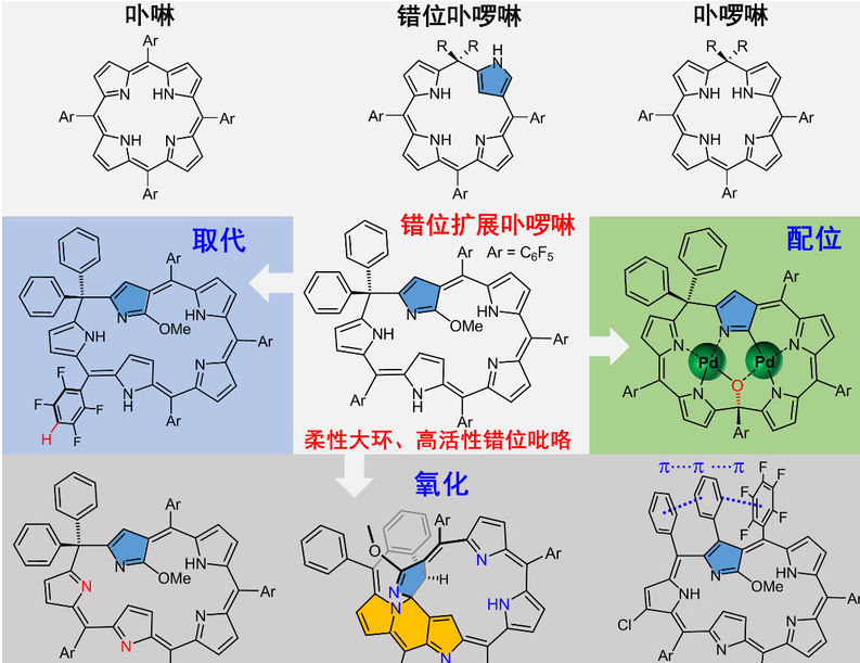 卟啉被譽(yù)為“生命色素”,在自然界廣泛存在。例如,葉綠素、血紅素和維生素B12 等功能體系均含有由四個(gè)吡咯環(huán)與中位sp2雜化碳原子首尾交替連接而形成的卟啉大環(huán)結(jié)構(gòu)。如果其中一個(gè)中位碳原子為sp3雜化,則...