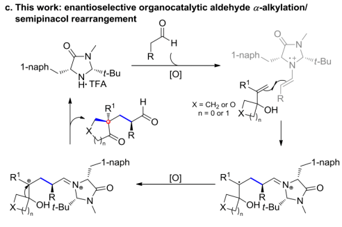 蘭州大學(xué)涂永強(qiáng)、張曉明團(tuán)隊(duì)報(bào)道了有機(jī)催化烯胺自由基正離子誘導(dǎo)的不對稱醛α位烷基化/半頻哪醇重排串聯(lián)反應(yīng),能以良好的收率、優(yōu)秀的對映選擇性以及良好至優(yōu)秀的非對映選擇性得到一系列光學(xué)純α-季碳-δ-羰基環(huán)...