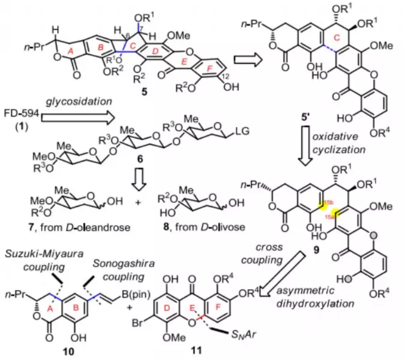 近日,華東師范大學(xué)高栓虎教授課題組利用不對(duì)稱雙羥化/氧化環(huán)化的新策略構(gòu)建了反式9,10-二氫菲-9,10-二醇母核(Scheme 1B,I→II),并首次完成了FD-594的不對(duì)稱全合成,該成果發(fā)表于...