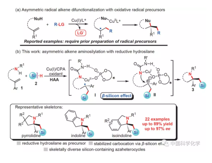 南方科技大學(xué)劉心元課題組采用易得的還原性硅烷作為自由基前體,通過外加商品化的氧化劑,在銅/手性磷酸組成的金屬手性陰離子對(duì)催化體系下實(shí)現(xiàn)了烯烴的自由基不對(duì)稱1,2-硅基官能團(tuán)化反應(yīng)。通過該方法,還能夠...