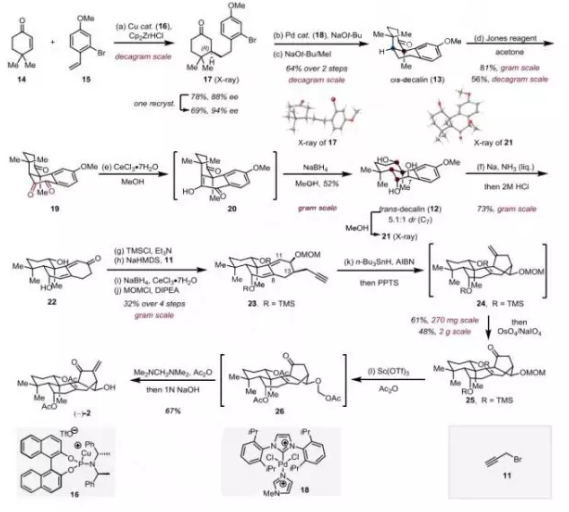 近日,北京大學雷曉光課題組通過后期光誘導的骨架重排完成了(+)-1、(-)-2和(+)-4的不對稱全合成,該成果發(fā)表在近期Angew. Chem. Int. Ed.上(DOI:10.1002/anie...
