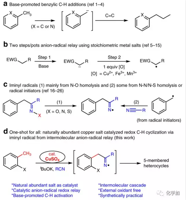 近日,中國(guó)科學(xué)技術(shù)大學(xué)的康彥彪研究員課題組和南京工業(yè)大學(xué)曲劍萍教授合作報(bào)道了堿促進(jìn)的芐位C-H鍵活化和銅催化的碳負(fù)離子自由基氧化還原策略結(jié)合的環(huán)化反應(yīng),實(shí)現(xiàn)了以甲苯和腈類衍生物為原料的N-H吲哚及其類...