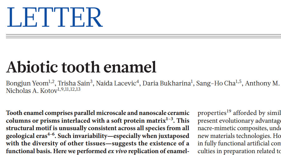 牙釉質(zhì)是自然界中最有標(biāo)志性的天然復(fù)合材料,它既堅(jiān)硬又有韌性,是一種可遇不可求的多功能材料,如能夠通過(guò)人工合成,其用途會(huì)非常廣泛。牙釉質(zhì)間的釉柱是它堅(jiān)固的基石,但在人造復(fù)合材料中,類(lèi)似于釉柱的“垂直”結(jié)...