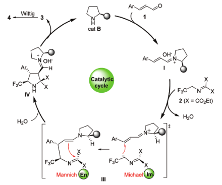 Mannich反應(yīng)(曼尼希反應(yīng))是有機(jī)化學(xué)中一個(gè)非常重要也非常經(jīng)典的反應(yīng),在基礎(chǔ)有機(jī)化學(xué)中就重點(diǎn)講過(guò),在有機(jī)合成和藥物合成化學(xué)中具有重要應(yīng)用價(jià)值。該反應(yīng)的形式如圖1所示,首先是一分子醛或者酮與胺(伯胺...