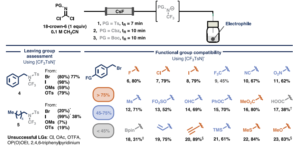 近日,荷蘭阿姆斯特丹大學(xué)Timothy No?l教授課題組開發(fā)了一個模塊化流動化學(xué)平臺,可簡化雜原子-CF3結(jié)構(gòu)單元的合成。該方法使用現(xiàn)成的有機前體與氟化銫結(jié)合作為主要氟源,可快速生成N-三氟甲基(R...