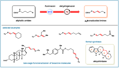 由于脂肪族亞胺容易水解和二聚,通過脂肪族亞胺的脫氫反應(yīng)合成α,β-不飽和亞胺具有較大的挑戰(zhàn)性。近日,東北師范大學(xué)傅俊凱教授與關(guān)威教授合作,開發(fā)了一種鈀催化脫氫合成α,β-不飽和亞胺的方法,該方法具有良...