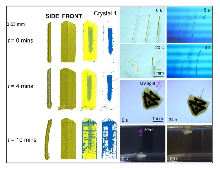 近日,青島大學化學化工學院王國明教授團隊在光機械響應晶體領(lǐng)域取得重要研究進展,研究成果以“Bending, Twisting, and Propulsion of Photoreactive Crys...