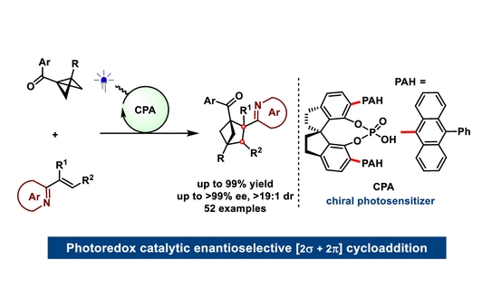 近日,河南師范大學化學化工學院江智勇教授團隊在可見光驅(qū)動雙環(huán)丁烷(BCPs)不對稱轉(zhuǎn)化實現(xiàn)新進展。該工作利用含芘基的手性磷酸作為雙功能催化劑(手性催化劑和光敏劑),通過雙環(huán)[1.1.0]丁烷與乙烯基氮...