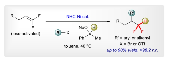近日,新加坡國立大學Ming Joo Koh與美國德州農(nóng)工大學Osvaldo Gutierrez團隊報道了一種鎳催化偕-二氟烯烴的1,2-選擇性氫芳基化和氫烯基化反應,合成了一系列具有二氟甲基取代碳中...
