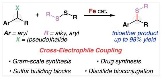 近日,美國(guó)南加州大學(xué)(University of Southern California)Elias Picazo課題組在無(wú)需使用還原劑和光氧化還原條件下實(shí)現(xiàn)了鐵催化,芐基鹵化物與二硫化物的親電交叉偶...