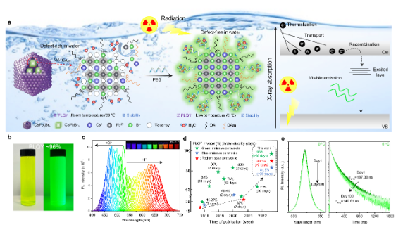 近日,中山大學(xué)王靜教授團(tuán)隊(duì)利用空位抑制劑聚乙二醇在低溫環(huán)境下制備了水相金屬鹵化物鈣鈦礦液體閃爍體,該材料具有寬譜帶可調(diào)的發(fā)射(420-680 nm)、高熒光量子效率(紅色:88.1%;綠色:96%;藍(lán)...