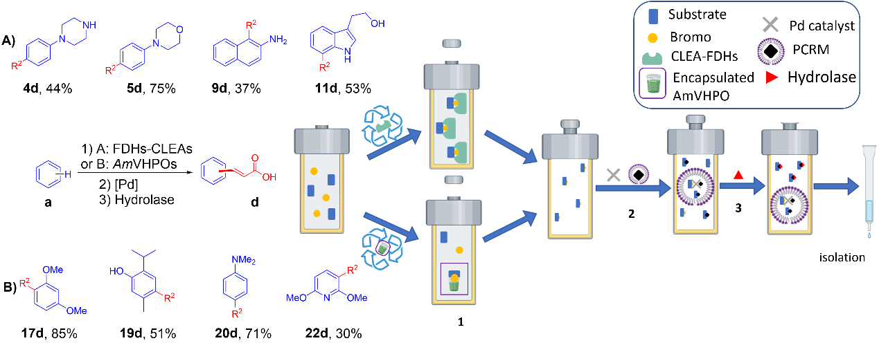 近日,德國(guó)亥姆霍茲藥物研究所Tobias Gulder團(tuán)隊(duì)報(bào)道了一種創(chuàng)新的酶與金屬催化平臺(tái)——H3CP(Halogenation - Heck Coupling – Hydrolysis Cataly...