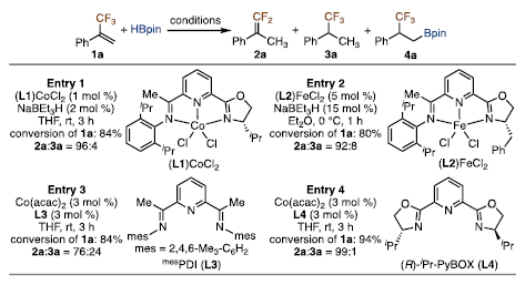近日,新加坡國立大學(xué)葛少中課題組以Co(acac)2和雙膦配體為催化劑,發(fā)展了含氟烷基取代末端烯烴與HBpin的去氟硼化和不對稱硼氫化反應(yīng)。多種氟烷基取代末端烯烴可發(fā)生這種不對稱硼氫化反應(yīng)并高對映選擇...