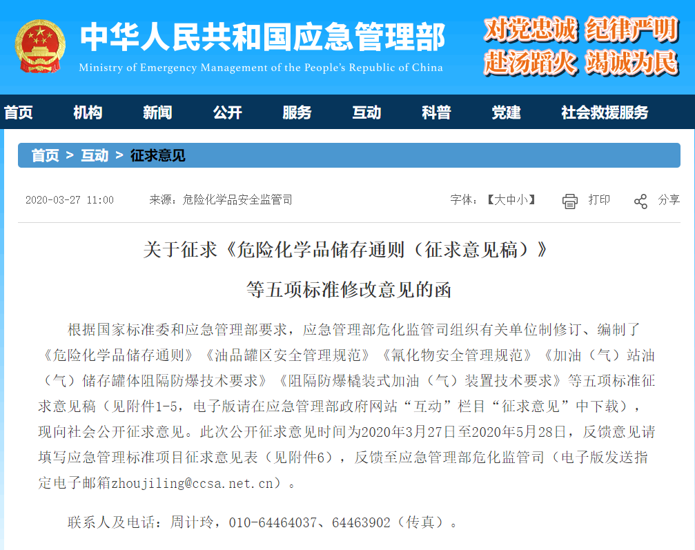 根據(jù)國家標準委和應急管理部要求,應急管理部?;O(jiān)管司組織有關單位制修訂、編制了《危險化學品儲存通則》《油品罐區(qū)安全管理規(guī)范》《氰化物安全管理規(guī)范》《加油(氣)站油(氣)儲存罐體阻隔防爆技術(shù)要求》《阻隔...