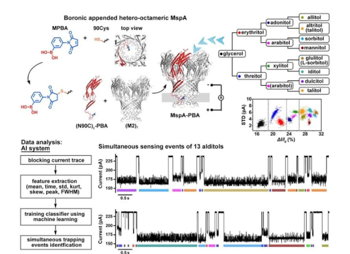 近日,南京大學(xué)黃碩課題組在苯硼酸內(nèi)嵌納米孔實(shí)現(xiàn)食品藥品內(nèi)糖醇自動(dòng)鑒定,相關(guān)研究成果以“Nanopore identification of alditol epimers and their appl...