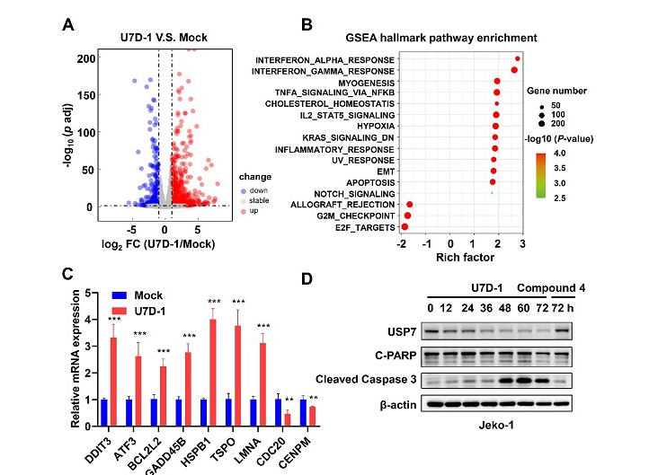 近日,中國科學院上海藥物研究所周兵研究員,李佳研究員以及周宇波研究員合作設計合成了首個能高效選擇性降解USP7的小分子探針U7D-1,并研究了其在p53野生型細胞和p53突變型細胞中的抗腫瘤活性以及作...