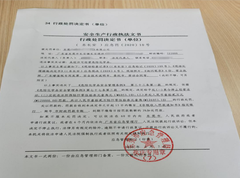 2020年3月10日,東莞市應(yīng)急管理局長(zhǎng)安分局執(zhí)法人員,對(duì)東莞市某化工材料有限公司進(jìn)行執(zhí)法檢查,經(jīng)檢查發(fā)現(xiàn)該企業(yè)銷售的產(chǎn)品中含有不在許可范圍內(nèi)的危險(xiǎn)化學(xué)品,屬于未經(jīng)許可經(jīng)營(yíng)危險(xiǎn)化學(xué)品。該公司行為違反了...