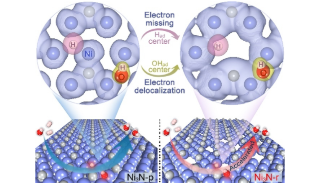 王得麗、趙旭團隊提出一種獨特的催化劑價電子分布調控策略,通過在超薄氮化鎳納米片催化劑中構造鎳缺陷,誘導氮化鎳中的價電子發(fā)生離域或缺失,從而有效調節(jié)了堿性氫氧化反應中間體的吸附與轉化過程,顯著降低氫氧化...