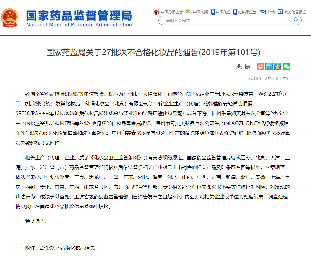 經(jīng)湖南省藥品檢驗(yàn)研究院等單位檢驗(yàn),標(biāo)示為廣州市恒大精細(xì)化工有限公司等7家企業(yè)生產(chǎn)的達(dá)尼絲染發(fā)膏(W8-22綠色)等10批次染(燙)發(fā)類化妝品、科瑪化妝品(北京)有限公司等12家企業(yè)生產(chǎn)(代理)的韓雅...