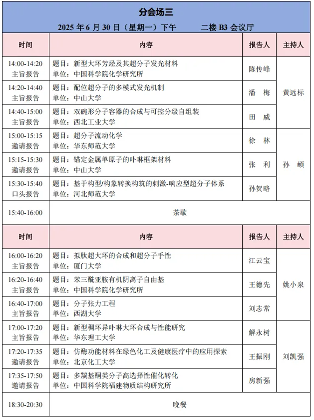 6月30日 (星期一) | 主旨報(bào)告、邀請報(bào)告、口頭報(bào)告 |