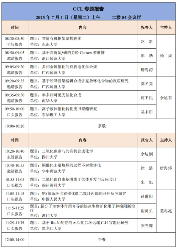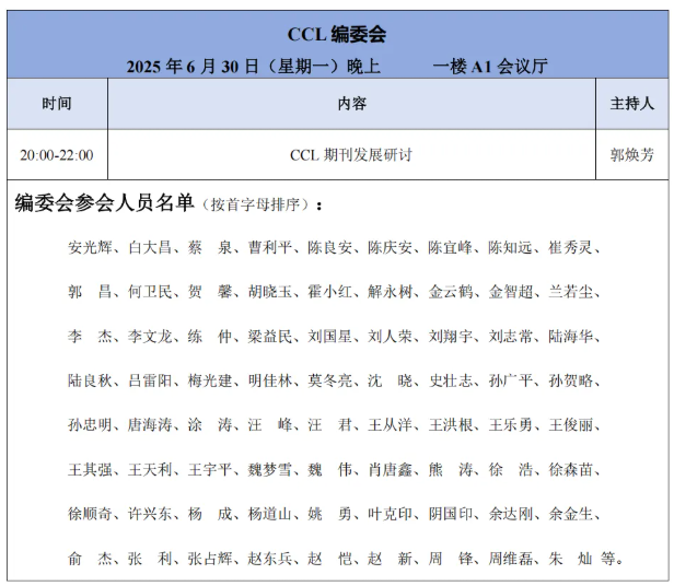 7月01日 (星期二) | CCL編委會(huì)、邀請報(bào)告、口頭報(bào)告、 研究生快閃報(bào)告、閉幕式 |