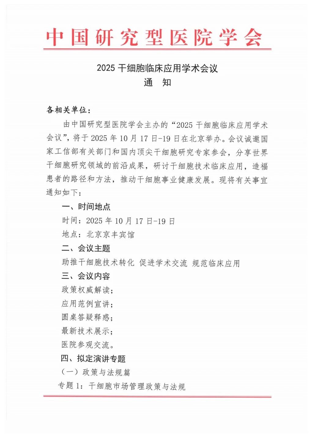 【10月17-19日】 2025干細(xì)胞臨床應(yīng)用學(xué)術(shù)會議通知及日程安排