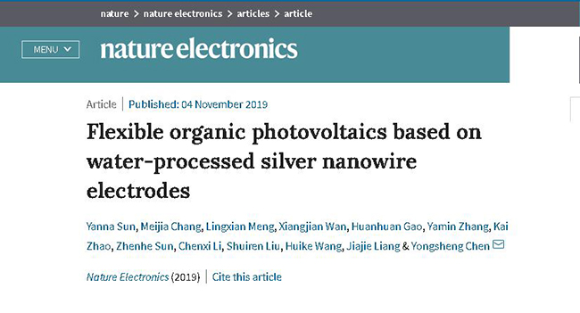 “除了應(yīng)用于有機(jī)太陽(yáng)能電池,這一低成本高性能柔性透明電極在其它柔性電子如有機(jī)發(fā)光二極管、晶體管、傳感器等領(lǐng)域也將有極大的應(yīng)用潛力?!标愑绖僬f(shuō)。