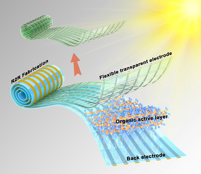 由于缺乏上述高性能的柔性透明電極,目前柔性有機(jī)光電器件的性能仍大幅度落后于相應(yīng)的剛性器件。柔性透明電極通常采用干法(如蒸鍍)或溶液處理(如狹縫印刷、納米壓印或電紡絲等)工藝制備。相比于干法制備,溶液處理方法制備柔性電極具有成本低,可大規(guī)?!熬韺?duì)卷”印刷制備等優(yōu)點(diǎn),發(fā)展?jié)摿薮蟆?/p>